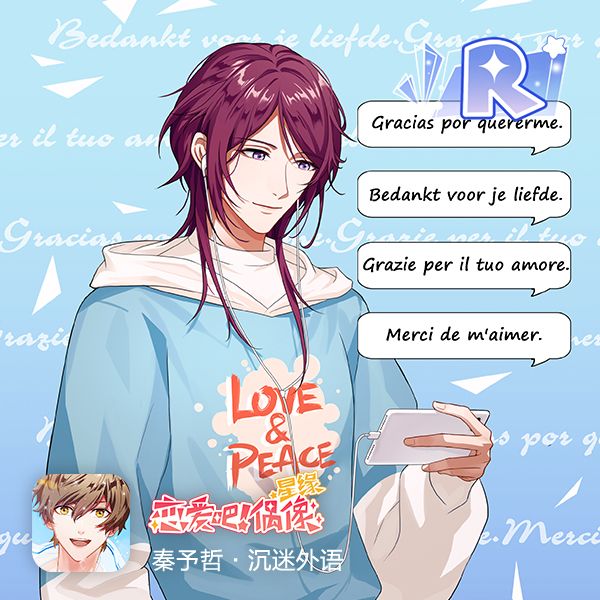 2020年5月11日早6:00起,累计签到18天即可领取【秦予哲.沉迷外语】星缘1张。