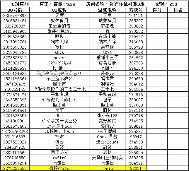 PPS:如在1月11日18:00之前有更改游戏昵称的小方块请记得私聊小方进行报备,不然会被房主剔踢出房间哒!!!