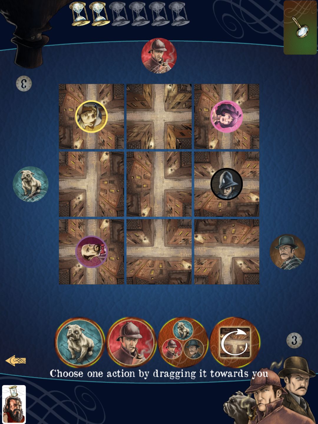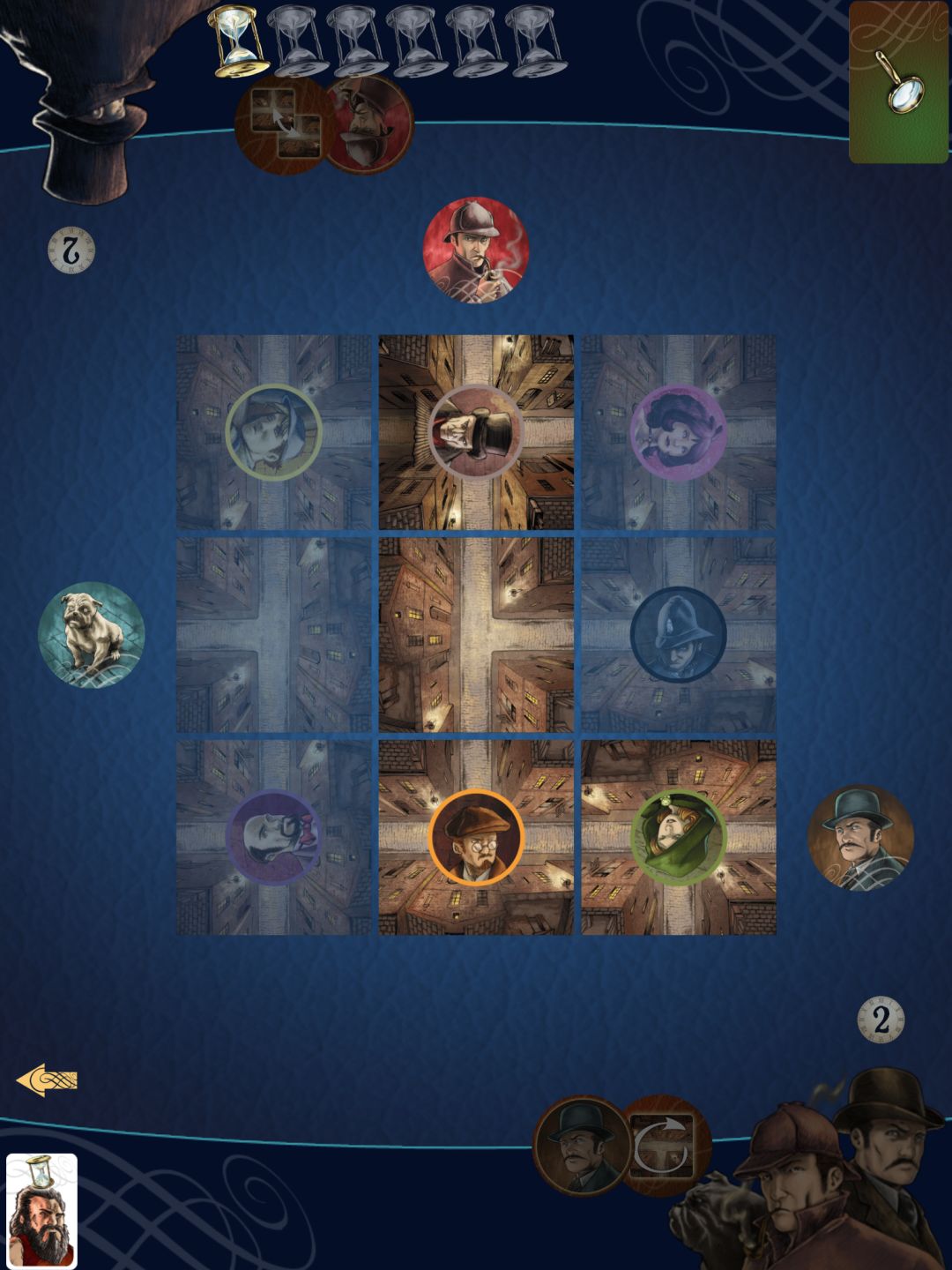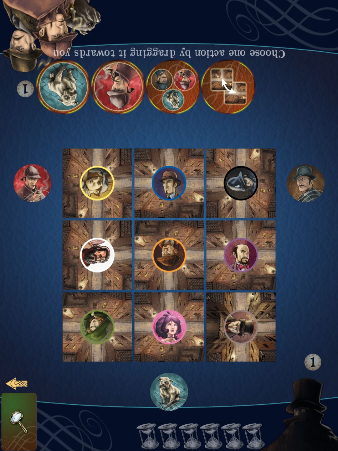 可选的行动包含了:移动侦探、交换版块、旋转版块以及抽取不在场证明。