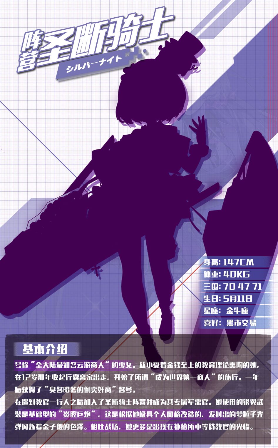 她,是全大陆最有名的云游商人(黑市奸商),圣断骑士阵营的又一萝莉鬼头,金牛座的爱财在这个147公分的小身板下得以完美隐藏  ̄ω ̄=