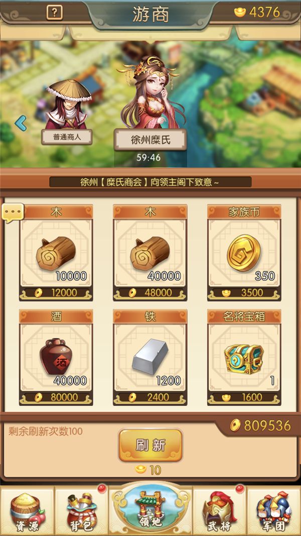 寻访有一定几率遇到游商,最多可以出现七个。游商有资源、军械等出售,运气好碰上游商集体五折事件,那就赚大发了。