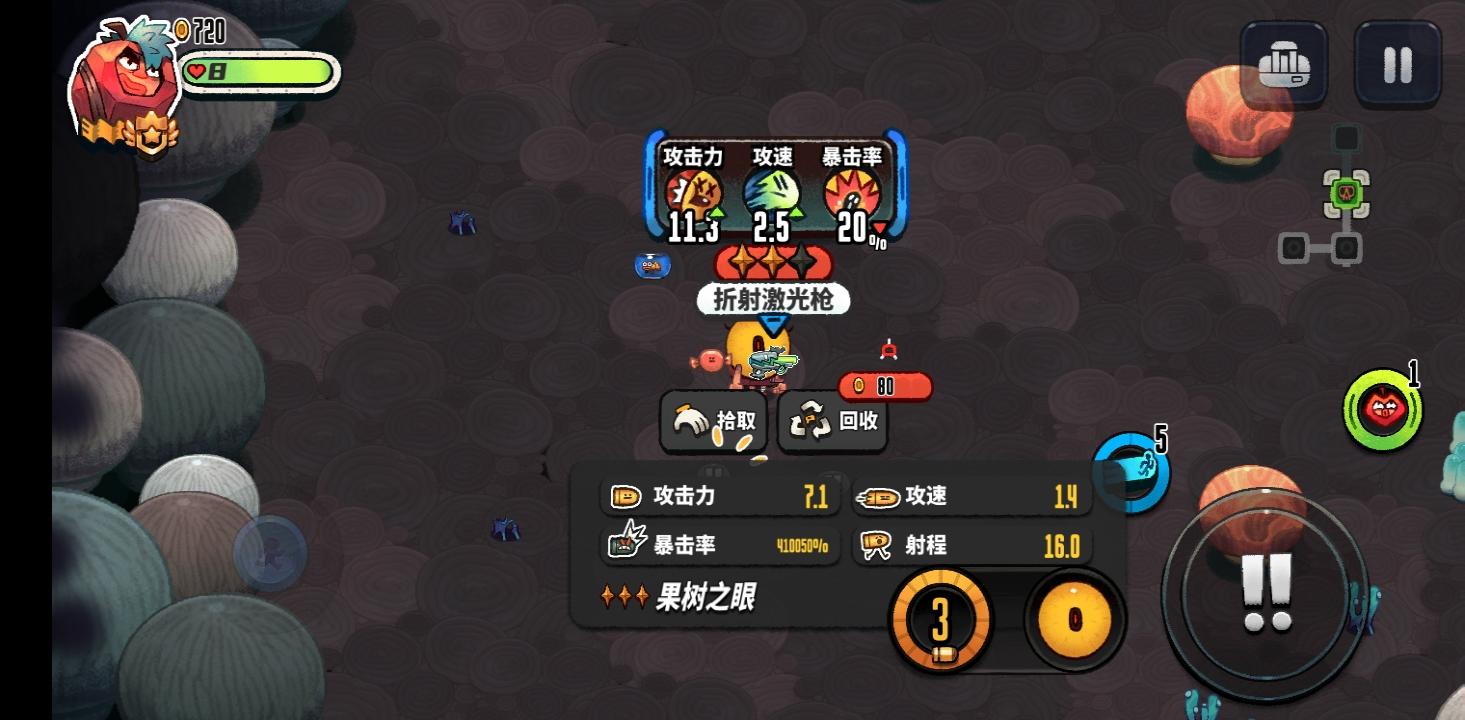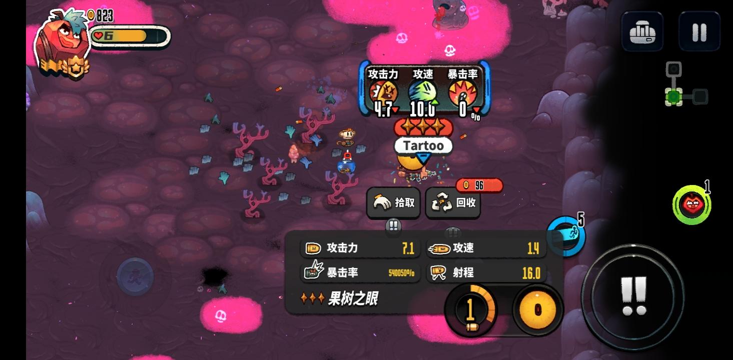 刚才用苹果侠玩了一局普通难度,带的是激光剑和果树之眼,期间果树之眼的暴击倍率出现不明原因的成倍增长。我把截图发到帖子内,还请各位进行分析。