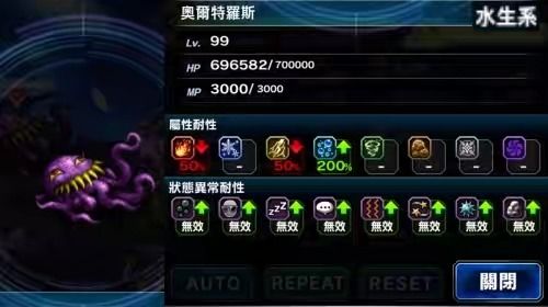 4、会受到攻击/精神debuff影响,对防御魔力debuff无效,但章鱼如果身上有debuff,它的物理技能会变成全体攻击(物理技能:章鱼脚,身上没debuff时为单体技能,属性弱化不算debuff!)