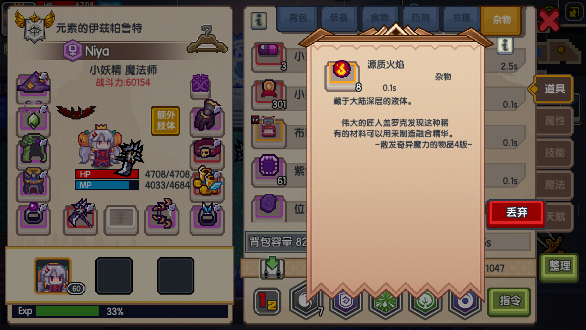 经过两天测试,验证源质火焰(3个在炼金遗迹合成熔炼精华)主要在15层以后宝箱掉落,越到后面掉率越高,20层以后基本每层都有,昨天过20层得了6个,今天24层7个,收益还是可以的,就是后面层怪物简直太可怕,根本扛不住。