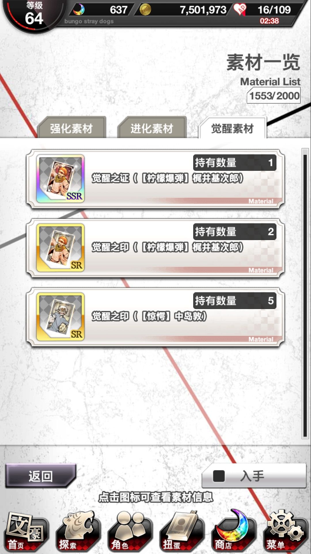 觉醒材料SSR多少张SR多少张?