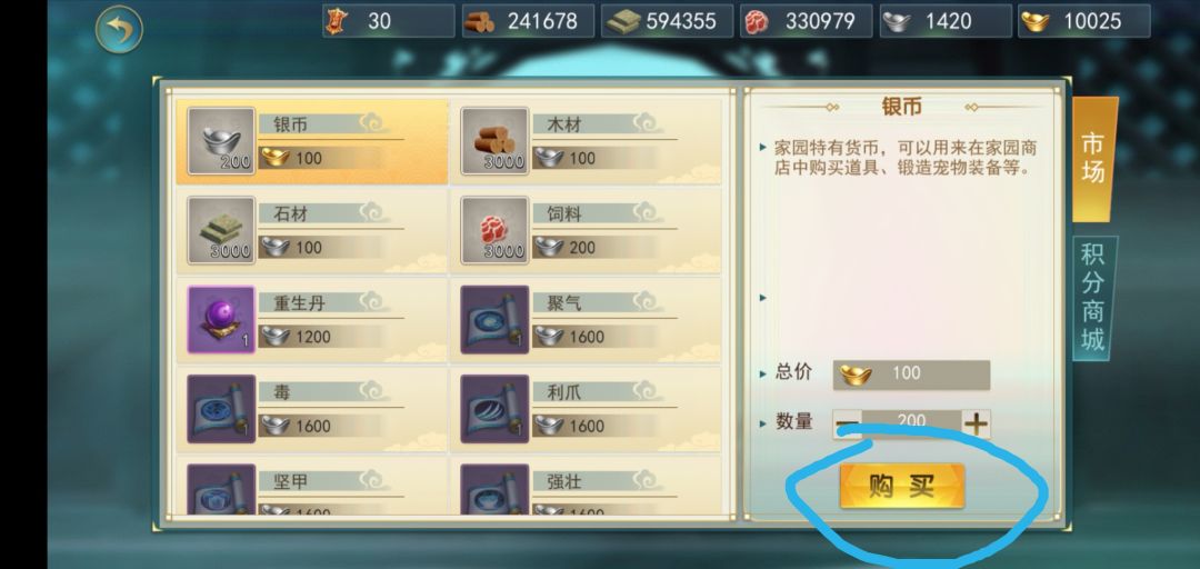 还有一点就是元宝购买银币了……一句话,木材石材资源靠勤劳多收菜,银币靠团本和每日福利慢慢攒就好了,千万不要手里抓了只白板S就想去当欧皇,买银币买重生丹去洗……赌狗一般来说也没什么好下场……