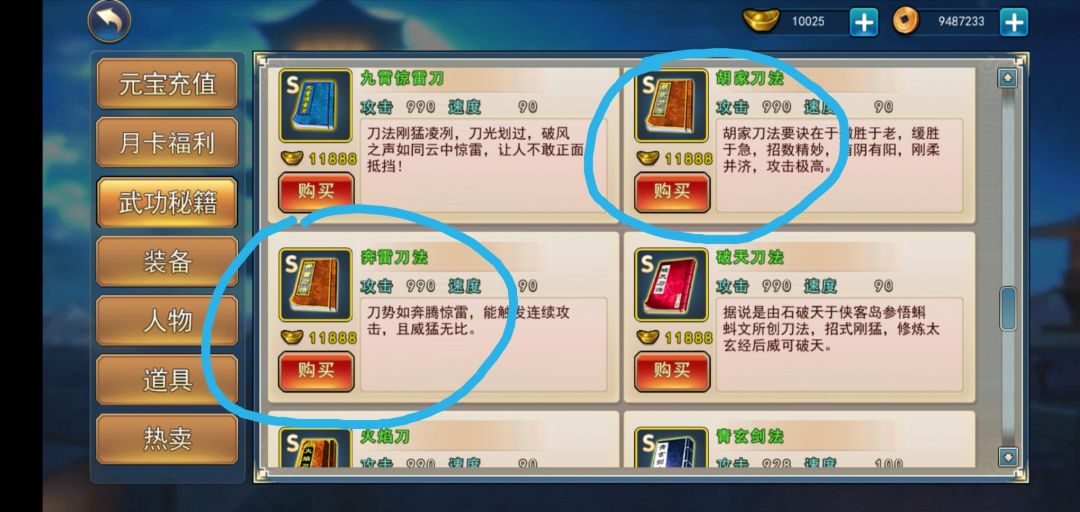 火焰刀买一手山庄箱子的梦想……至于胡家刀法、奔雷刀法、明月刀法这三本就攒元宝老老实实买下来……别说后续老楚会给白嫖,那是不可能的,一大堆人已经花元宝买了,不存在白嫖的可能性。S级商城内功的话,还是那句话……若干年之后也许你的刀也能吃上一本无字心经了……