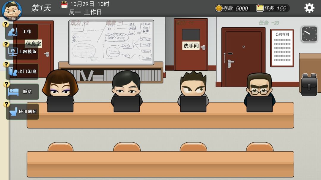 如图二老板不在的时候可以选择上网摸鱼或者是出门