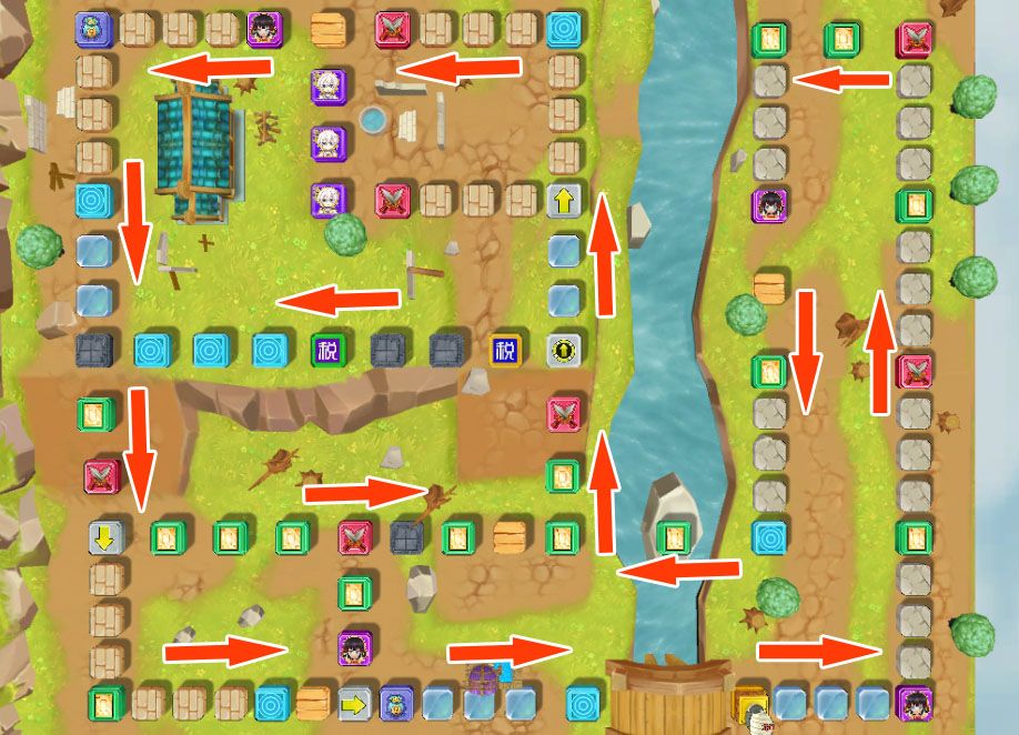 此图的传送格都为单向传送,从起点出发,第一个传送点为A传送点,传送到A点