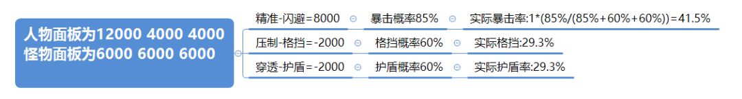 数值刚刚抵消的情况很少(不好意思计算省事儿,偷了个懒)。这也是为什么我们打怪很少看到白字,因为白字是填坑用的,只有上述三对概率触发之和小于100的时候,才可能触发白字。所以当你总能看到白字的时候,说明你的三攻和怪物的三防比较接近了。