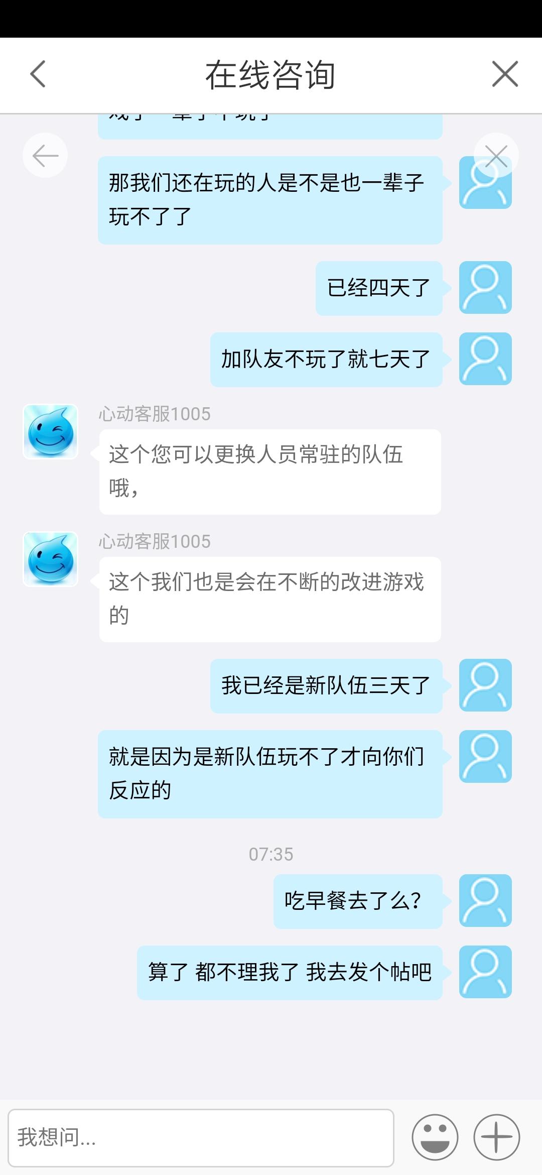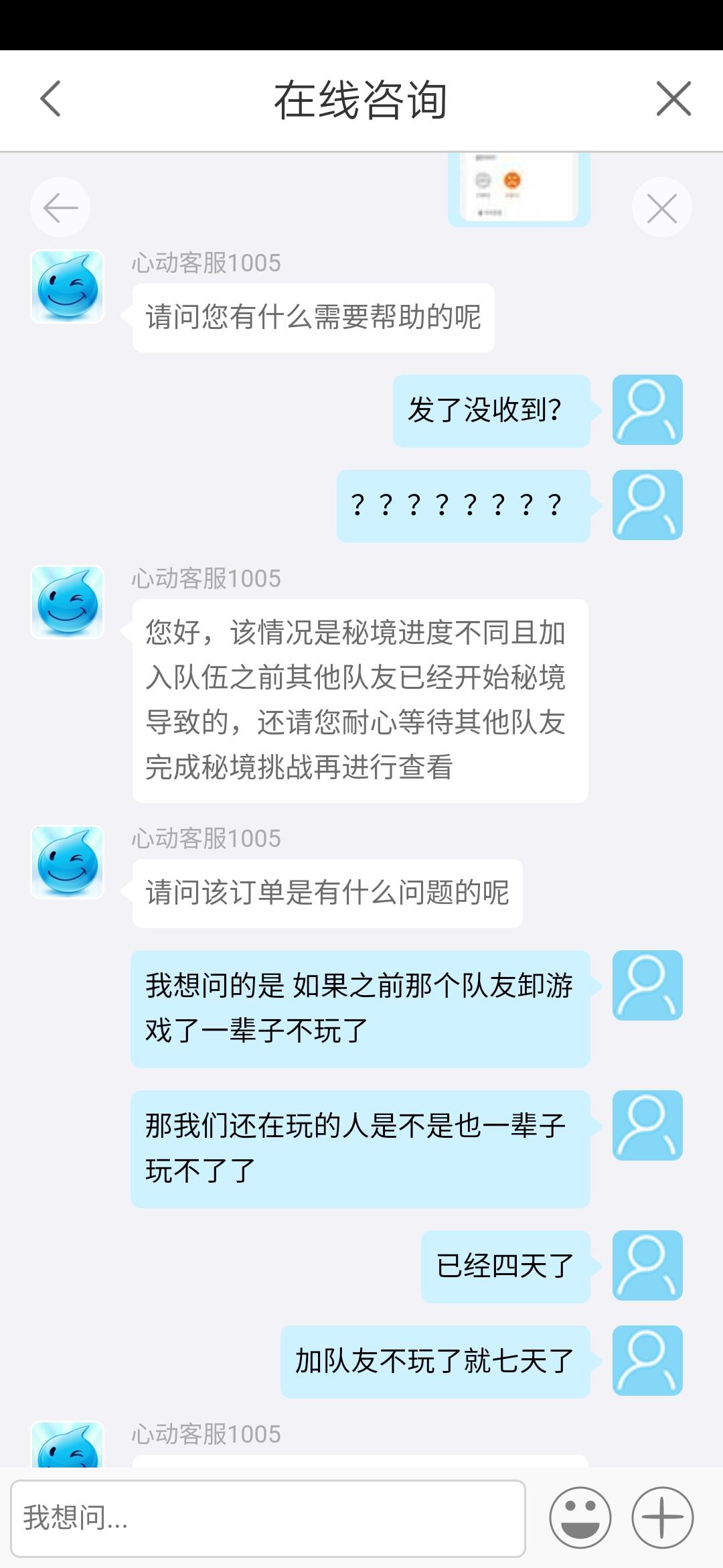 然后我们其他人顶他队长,加了新人进来,但是一直就打不了秘境探险,三天还都给我们派秘境探险这个日常任务,三天都没完成,跟客服说,客服也只能拖。发个帖抱怨一下,见谅。
