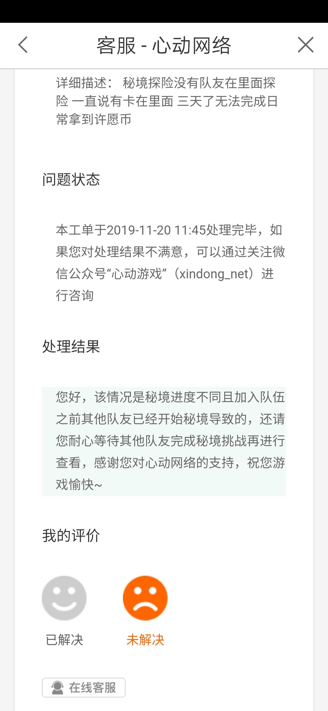 秘境被之前队友卡bug 然后就一直玩不了 客服处理 拖字决
