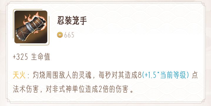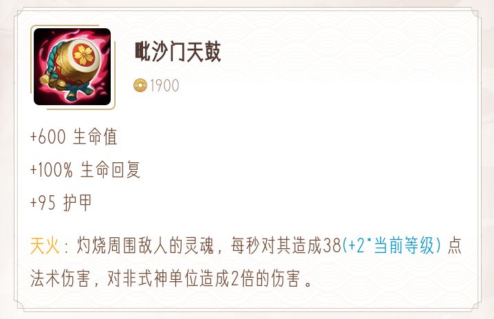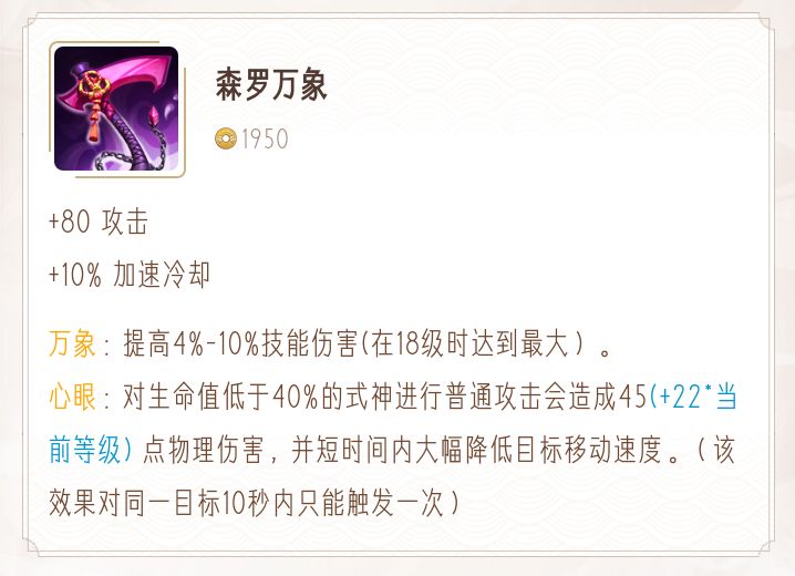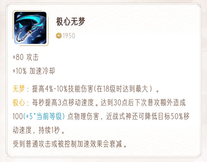 很全面的属性,被动效果与茨木一技能契合,攻速提高对拼能力移速加成方便追杀