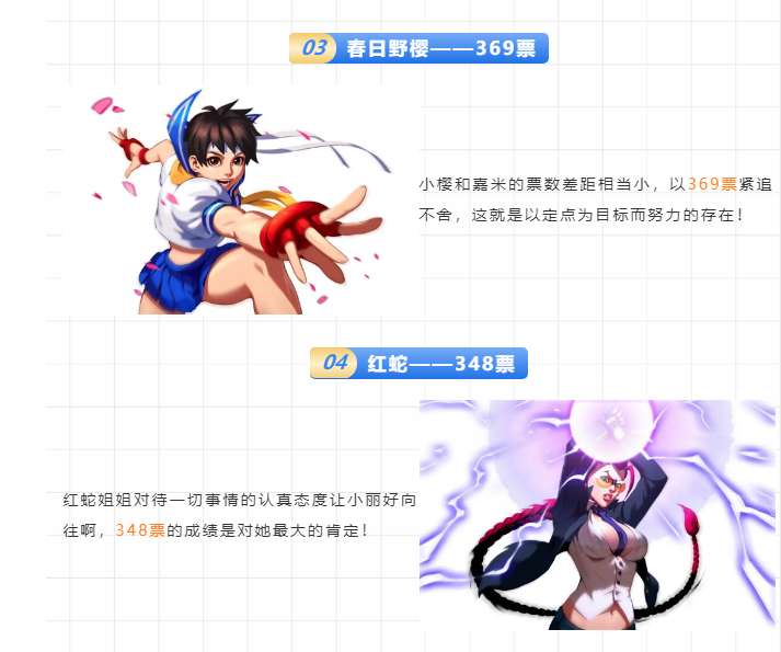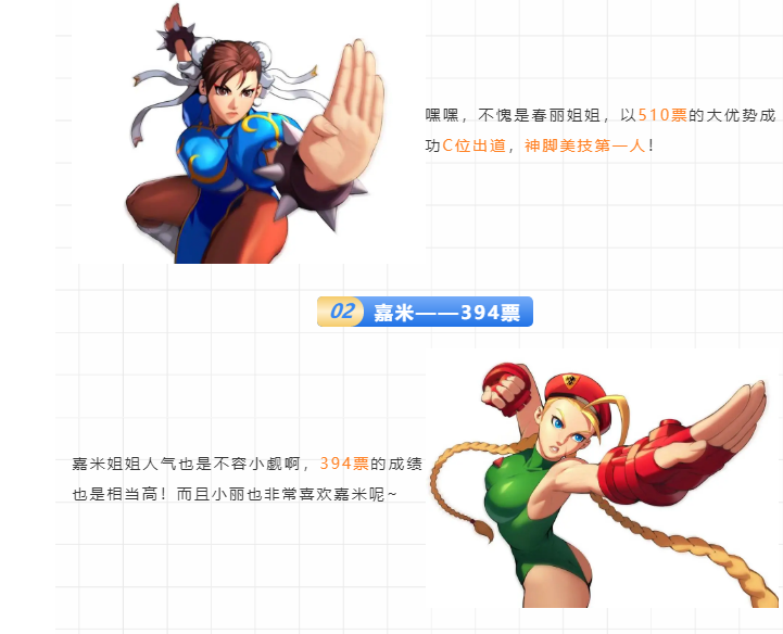 虽然有点小插曲,不过我们的街霸女团票选还是完美结束啦!接下来有请她们★闪亮★登场吧!