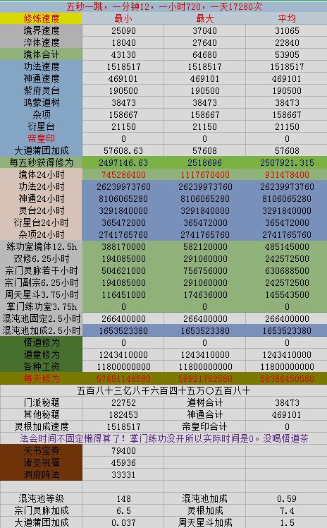 表格(图片)里修炼秘籍的数值均为七级无加成的数值。
