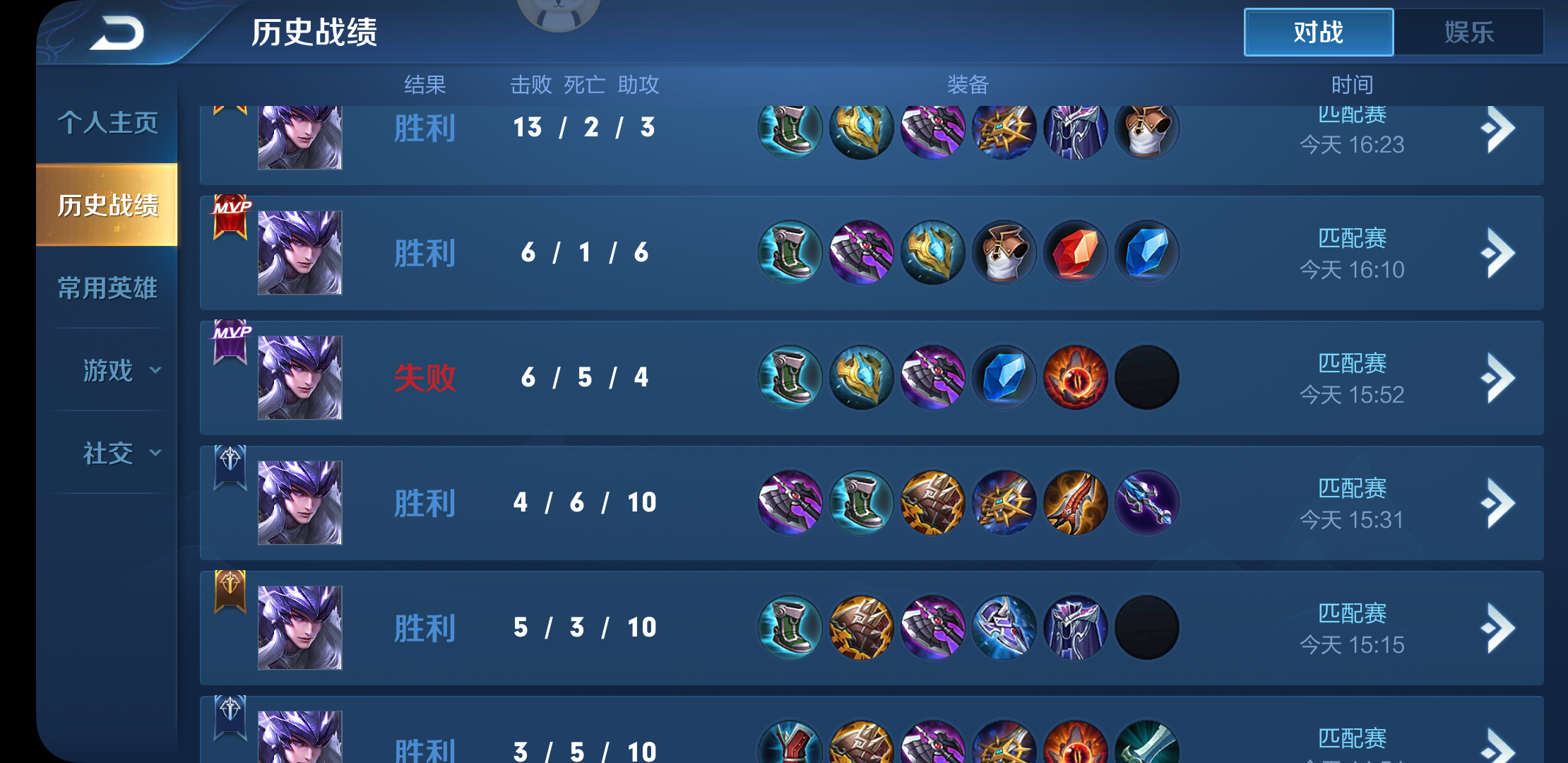 战绩如图,今天下午排位连跪。只能打的匹配这样说。