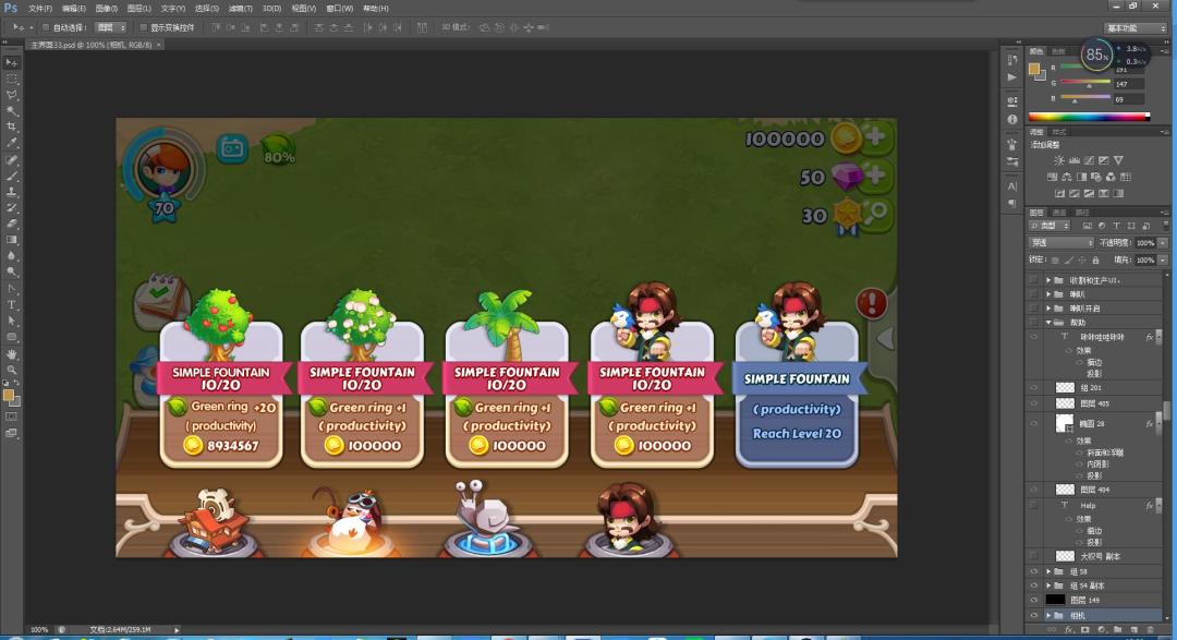 整个的结构布局是市面上模拟经营类游戏通用的做法,是比较符合玩家体验的一种布局方式。