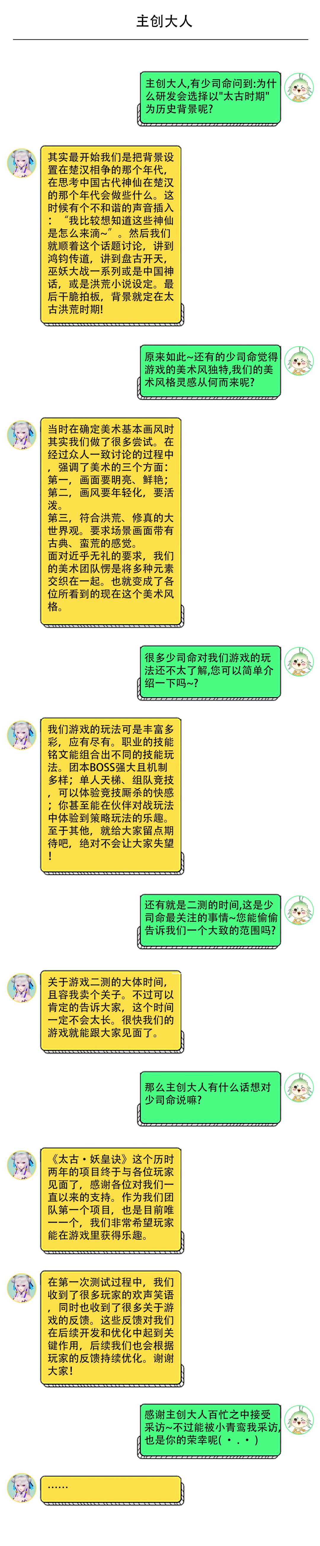 近些日子,小青鸾收到了许多少司命的私信,大家都对《太古·妖皇诀》手游表现出了浓厚的兴趣。还有不少少司命提出了一些关于游戏剧情、游戏开发的问题。