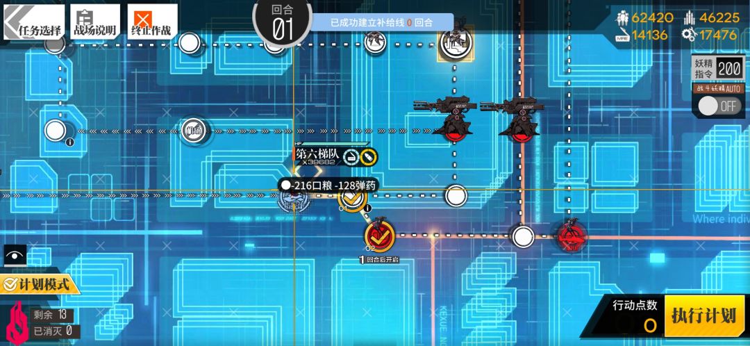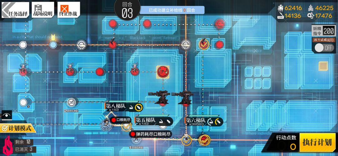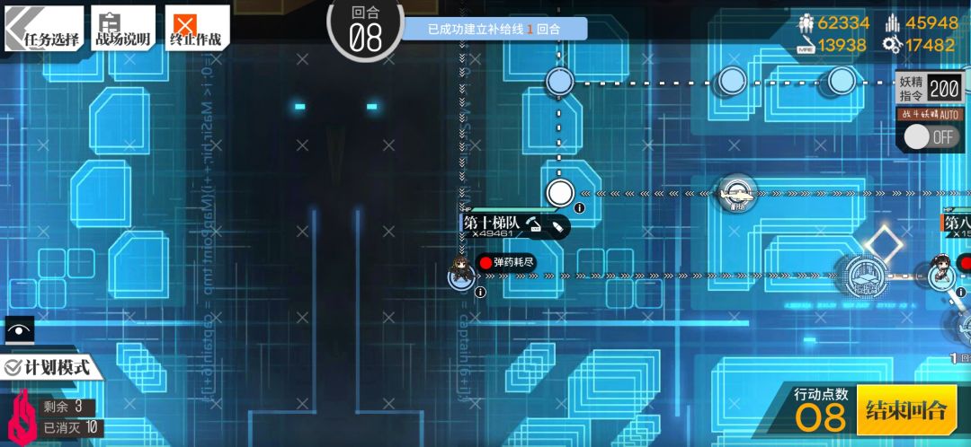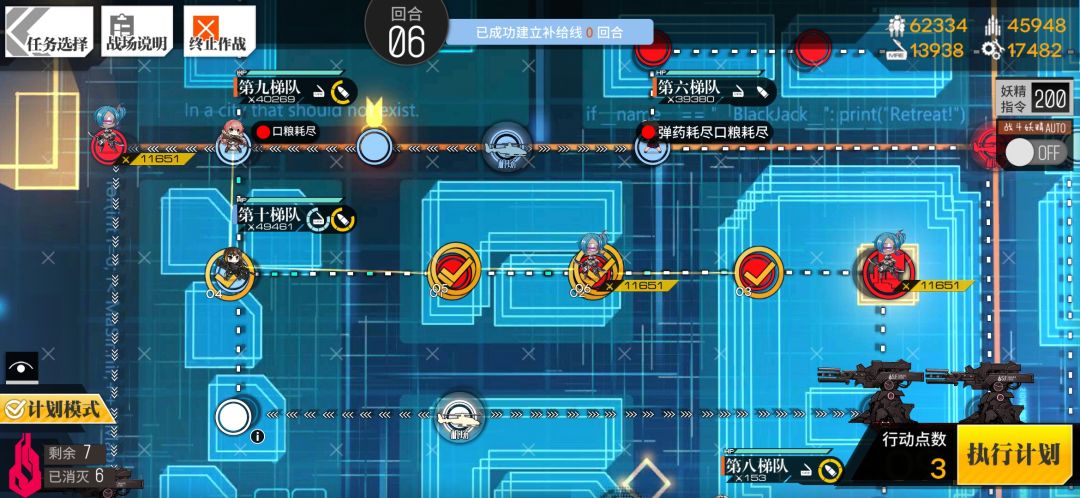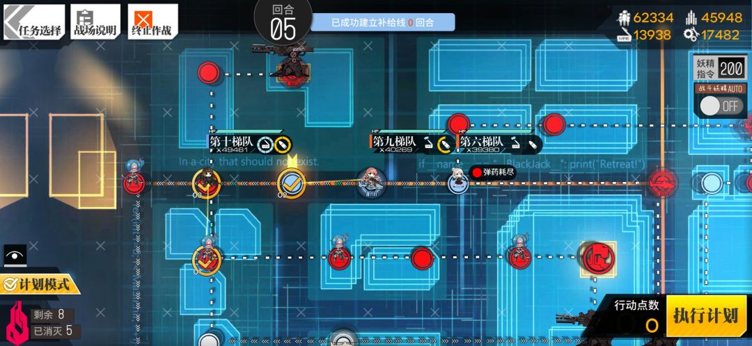 狗粮前往占领补给线,m4占领左上刀娘的位置。