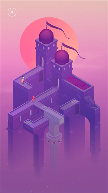 晚霞将天空染成紫红色,紫红色倒映在水中,整个空间都泛着紫红色的美丽。象征了对浪漫的追求与对幸福的渴望。《纪念碑谷2》中场景,落日染了紫红色的天,也染了紫红色的宫殿。体现了一种母女之间无法言说的深情。