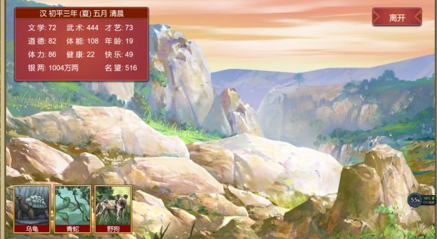 当武术大于300时,郊外开启狩猎功能,当我们进入野外就会出现如下界面,那么现在,战斗开始