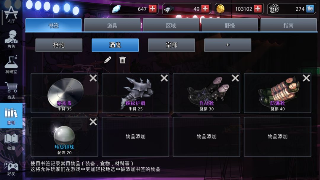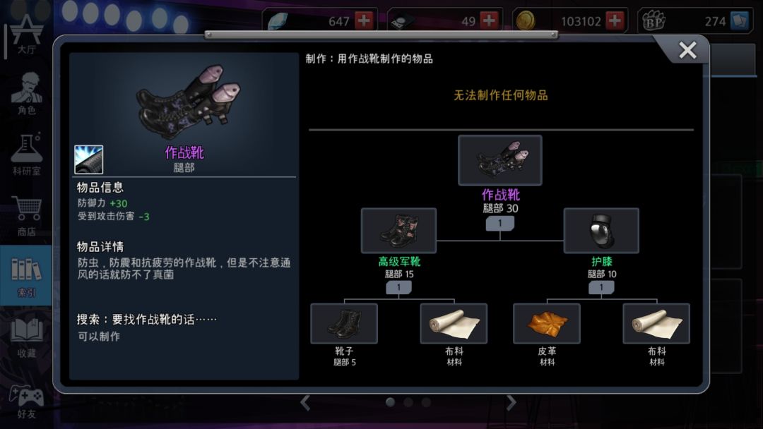 3:稀有防具的补充和武器的制作:当你捡到稀有材料时,可以根据自身装备情况进行装备补充,其中实用易做的装备如下(忽略掉2双鞋子,不想再重新截图了orz)