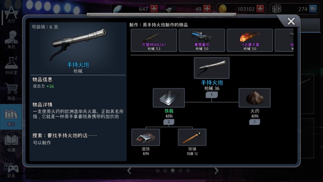 关于火炮:指手持火炮,由铁板+火药做成,通常用于3大枪点禁区或被堵死的情况下做出,搓火炮的路上可以顺手补武/防(隧道在博士死后不考虑,靶场,灯塔,其中灯塔最多)。一组铁板能做2个火炮(12层被动)也足以让你在这一回合上的被动不至于一层都叠不上