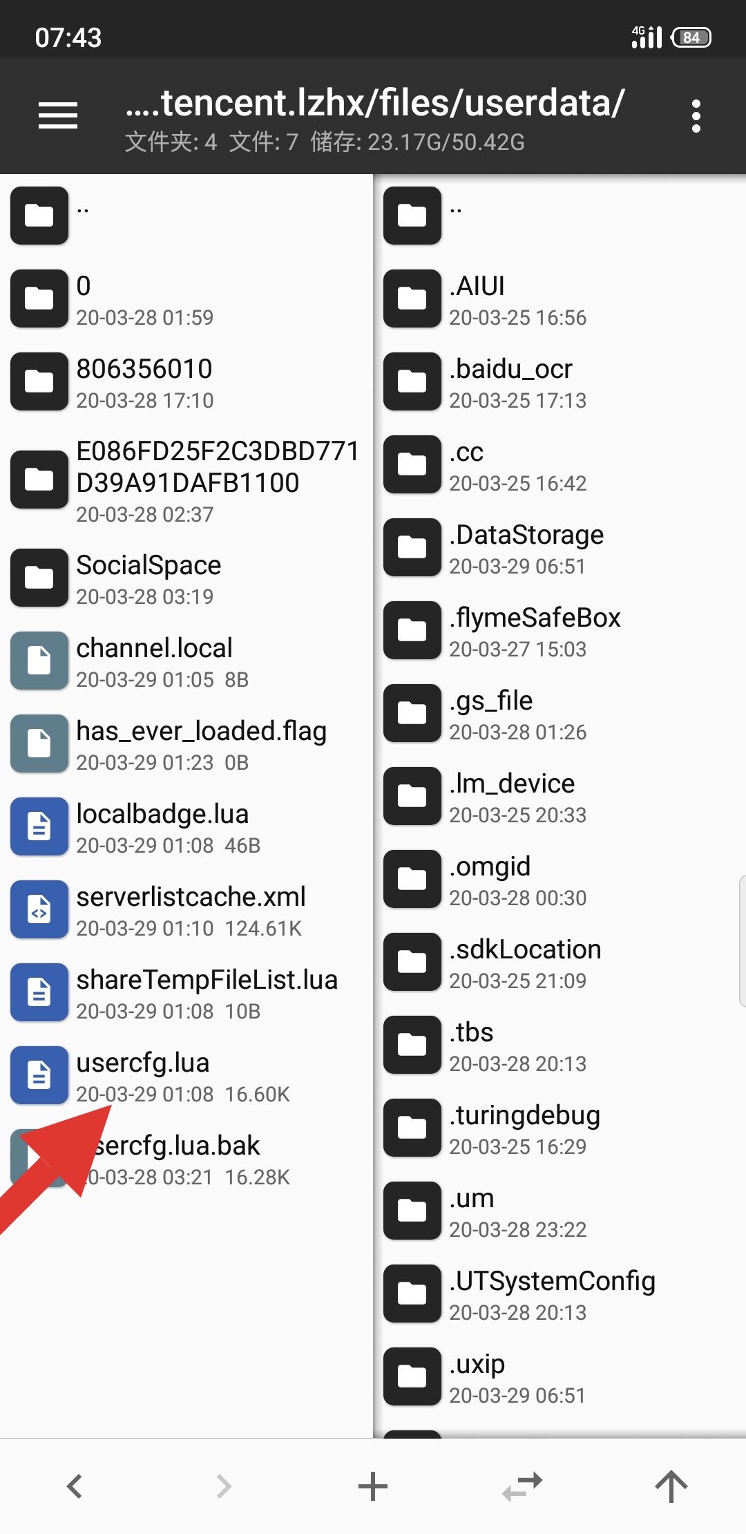 第三步:依次打开以下路径/storage/emulated/0/Android/data/com.tencent.lzhx/files/userdata/