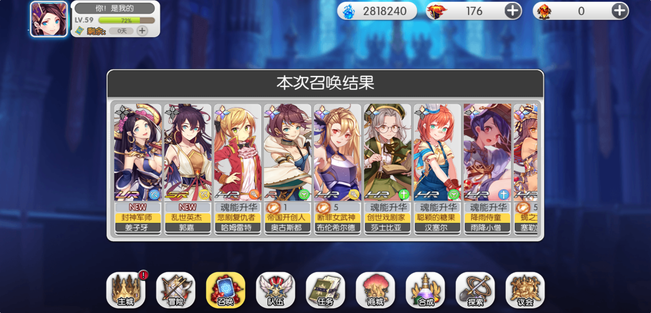 千辛万苦,终于通关噩梦4,然后全部家当来一发十连,欧了!
