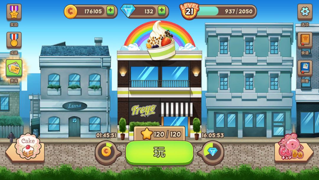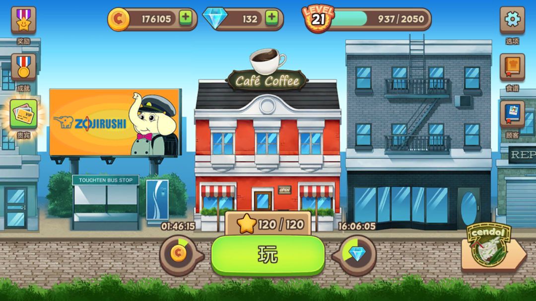 食品机器那些的不一定要点满 我咖啡店不懂是全点满了 珍多店主要点炸东西的速度和填充的速度 蛋糕店我烤箱点了三个 盘子全点 蛋糕基本按两黑一白烤 酸奶店机器一定要点到最高 不然等的真心累 水果进货只用点两次就是了,没必要点那么多。甜甜圈店也是机器最大 酱什么的点到二层 其他所以砖石一定都要点到卖价上!