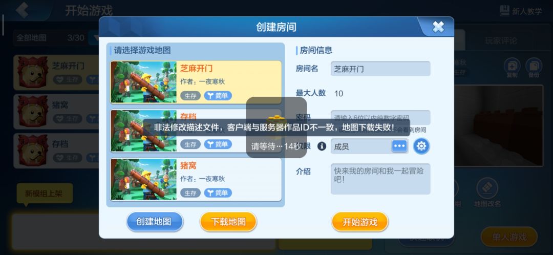 为什么每次开联机时就会显示id与服务器不符,地图上传失败什么的。然后自己也卡在那。只能重启游戏。