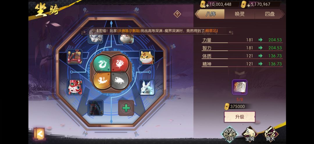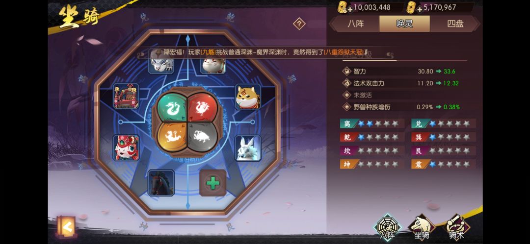八阵图:优先法术物理攻击 其次力量和智力 再往后是野兽