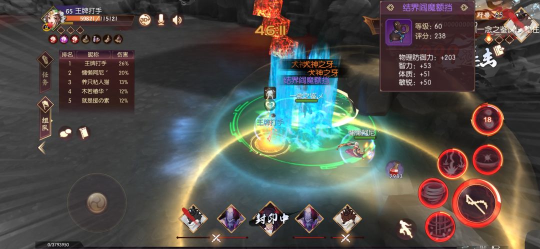 然后一个错误的观点要提出来 武道值和装备评分不能代表伤害只是代表一个伤害下限所以挑选队友的时候要看他的属性而不是看他的武道值和装备强化等级