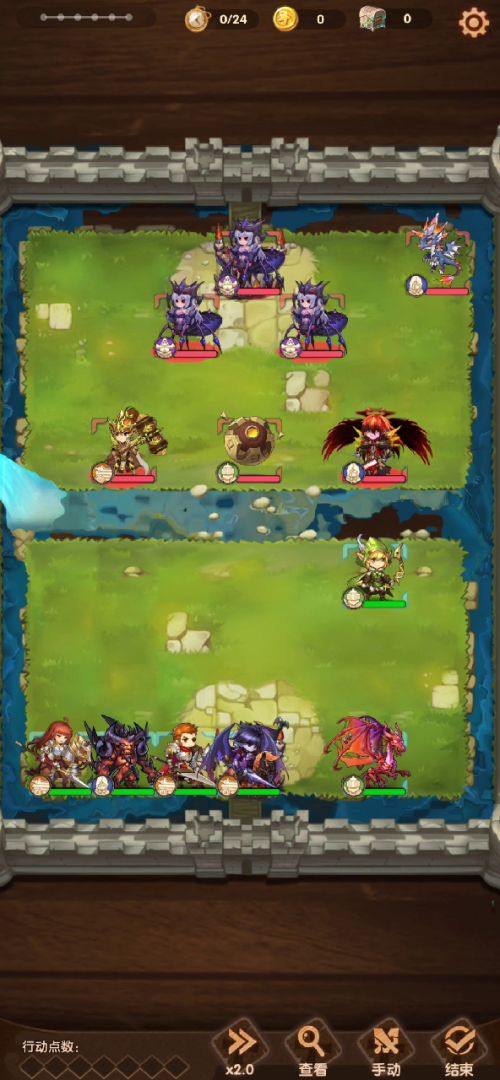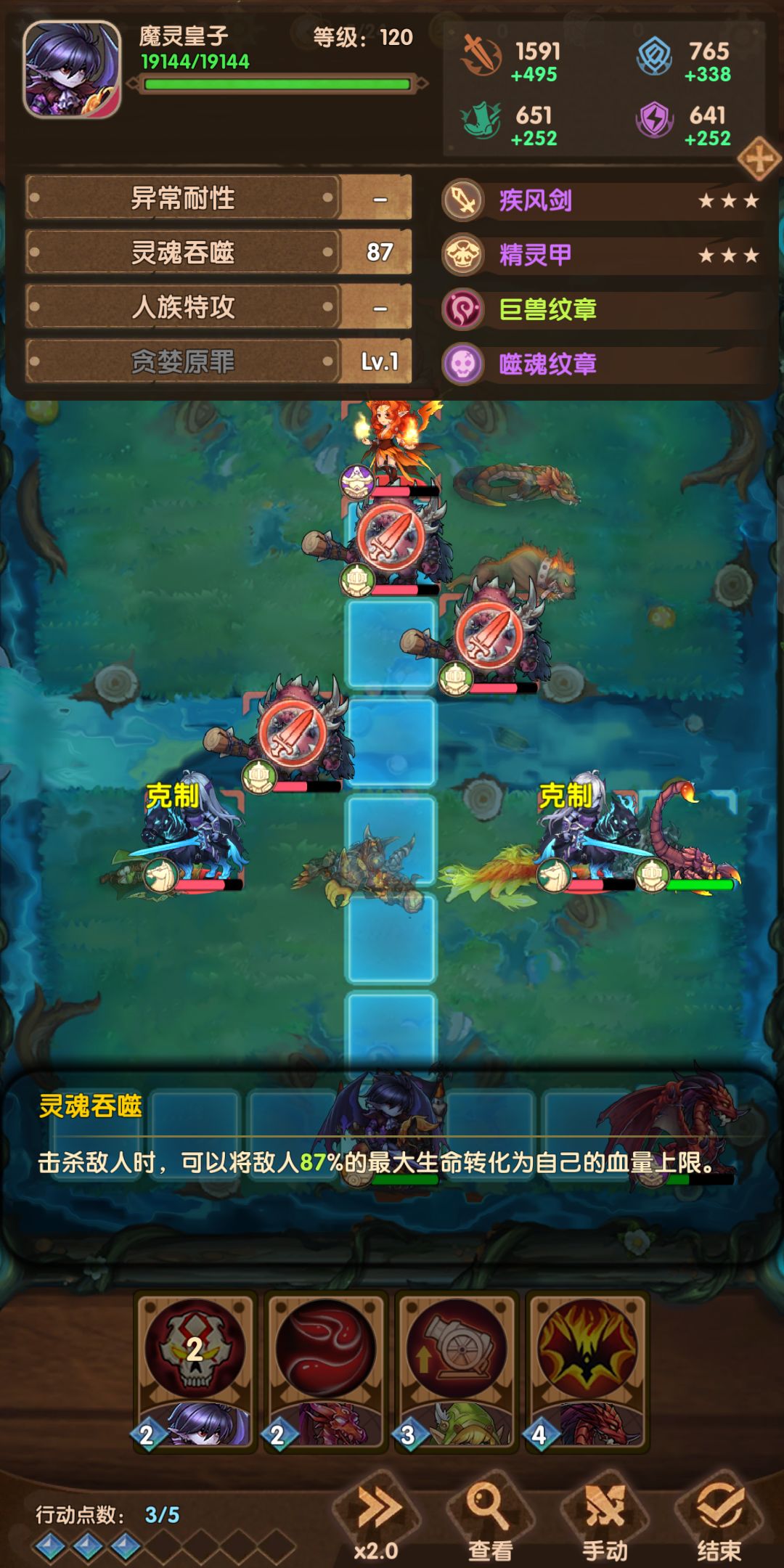 这是别人打的。标枪叠无视防御,血龙吸血,弓箭连击。用大恶魔处理第一回合行动力不足无法秒杀车兵的情况。荣耀骑士叠了个伤害格挡。可以参考下。
