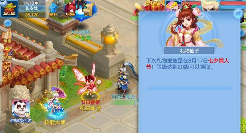 七夕鹊桥,共度良宵!8月17日七夕节当天,在长安城“红娘”处举办婚礼、修改结婚称谓可享受半价优惠。此外,商城礼包分页增加“玫瑰礼包”,每人限购1个,同时,长安城“礼物仙子”也将为20级以上玩家送出七夕情人节礼物,祝天下有情人终成眷属。