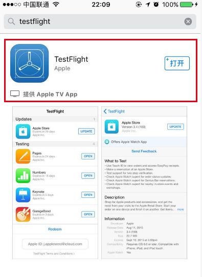 第三步,下载Test Flight这款APP。玩家可通过两种方式获取下载链接,一是进入AppStore搜索下载,二是直接通过邮件内链接下载。本软件为苹果官方APP应用软件,大家无须担心安全问题。