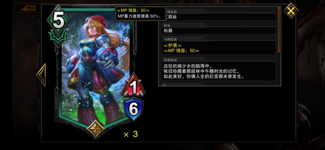 5费1-6身材自带护盾,开局就下站场是能站住的,自带50%mp回复加速,开局就能有较大优势!ಠ_ರೃ当然了如果开局没拿到也没有关系~后续下站场站的住,效果也是非常非常强力的,让你的节奏比别人快50%,就问你怕不怕!
