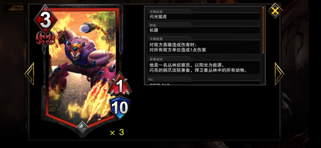 除了这个老虎,其实所有卡都可以当输出打手,只要他生存能力好一些,别给几个buff加上会飞了都快躺了就OK,所以不必苛求保老虎,就算躺了后面也有机会,不像传奇躺了感觉亏了一个亿~