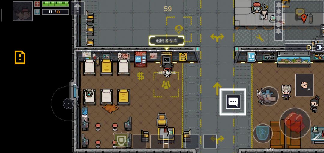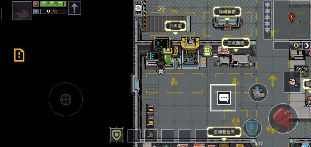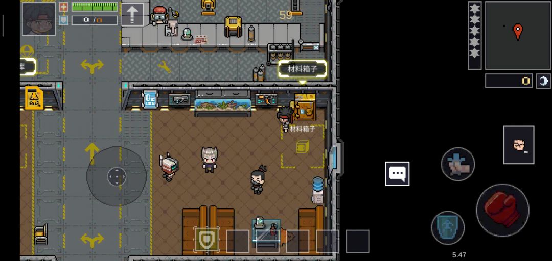 直奔主题,选择好角色后我们一一查看飞船上有哪些功能。首先是这个材料箱子,可储存游戏过程中掉落的材料道具,材料是有上限的,材料和图纸可以合成一些强力武器和被动哦
