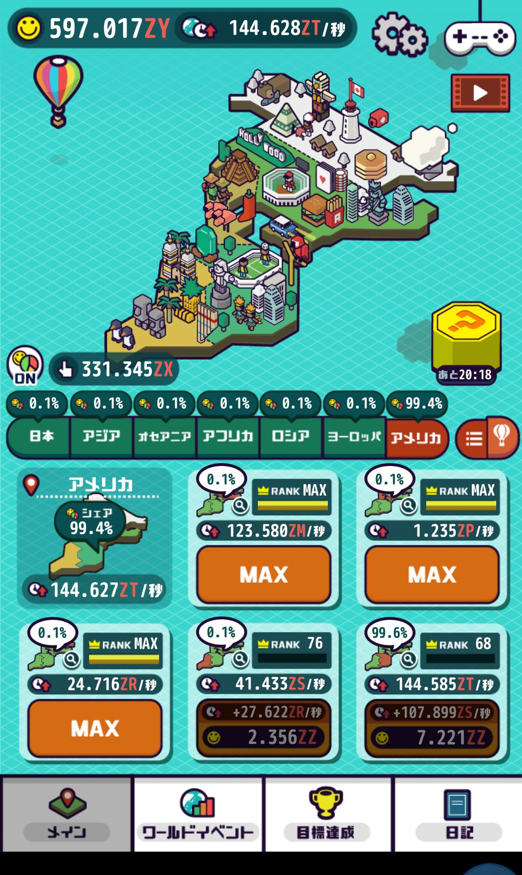 肝到这个程度已经无法继续下去了,点击收益已经到顶,放置收益太少可以无视了,就算再提升一阶也不过是两倍……点击收益300+ZX,放置收益才ZU单位!(U→V→W→X)