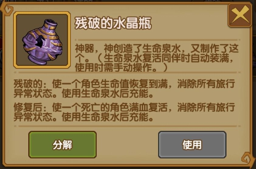可以回血,回状态,修复后与复活石效果相同,但需要用泉水激活