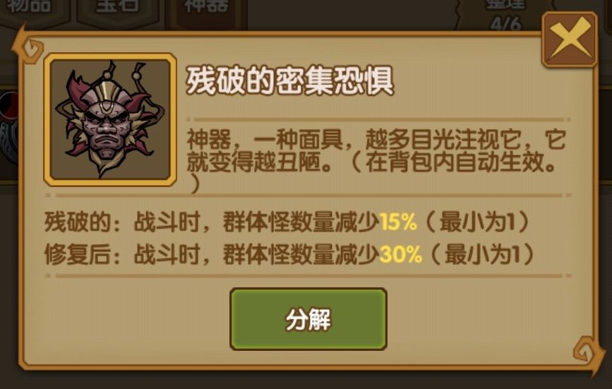 密集恐惧减少15%敌人数量,可以削弱敌人对你造成伤害的次数,对战斗帮助明显
