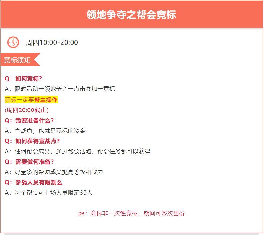 各位帮会帮主请注意,你今天责任重大!