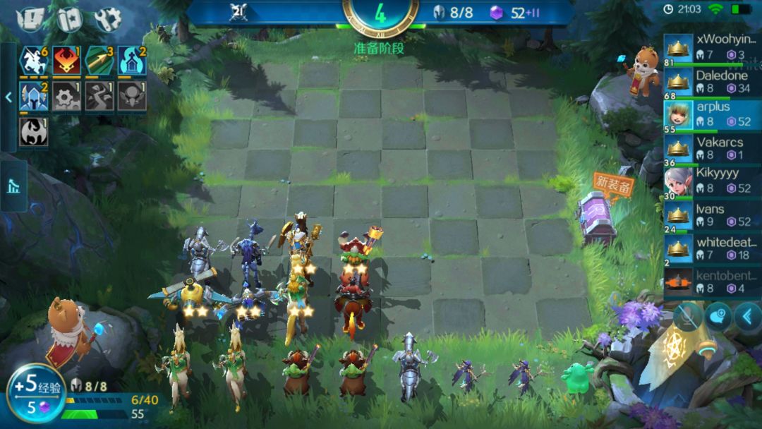 6人口:当经验刚好在5级5/10的时候买一次经验直接升6,凑出4骑3猎。开始存钱吃利息了,50块钱之前看到妖姬在不卡利息的情况下可以拿一个,不过我一般是不会拿的。