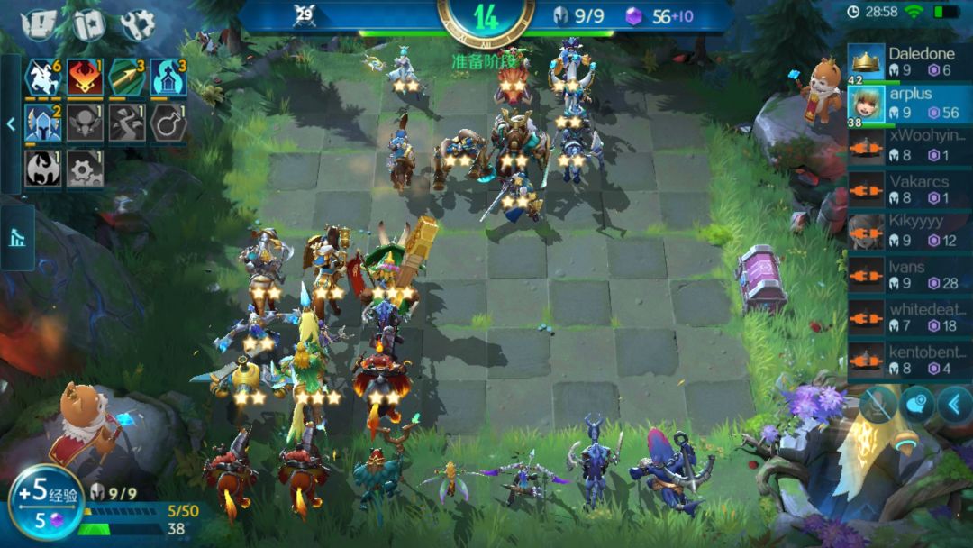 7~8人口:之所以把78人口放在一起是因为我们会用50块多余的钱都拿来升人口,升到8人口才停下来搜棋子,搜棋子不要上头,搜到50块钱就收手,下回合再继续搜,这时候搜出妖姬和天启都要留。搜出6骑3猎2亡灵阵容,并且除龙骑外都升2级就可以考虑升9升10了。