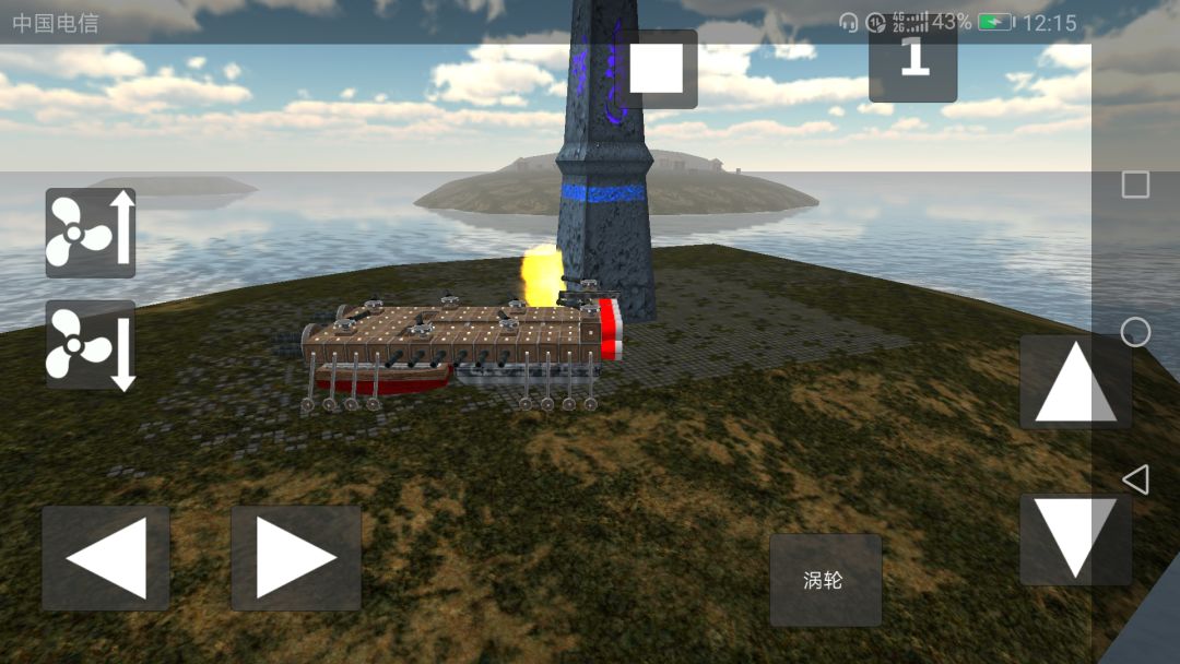 远处有一个塔,在游戏停止的按钮旁边