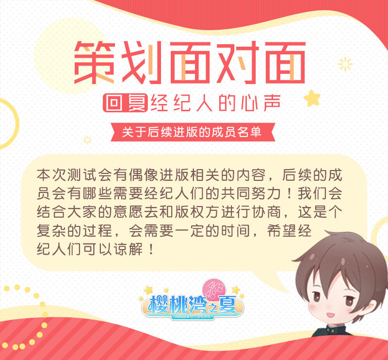 《AKB48樱桃湾之夏》的策划小哥哥们,也有在偷偷看论坛的帖子哦~~挑了一些大家想知道的内容偷偷告诉大家~ 当然,想知道其他问题的小伙伴们,也可以继续提问哦,我们会一直在论坛里“潜水”。嘻嘻~~