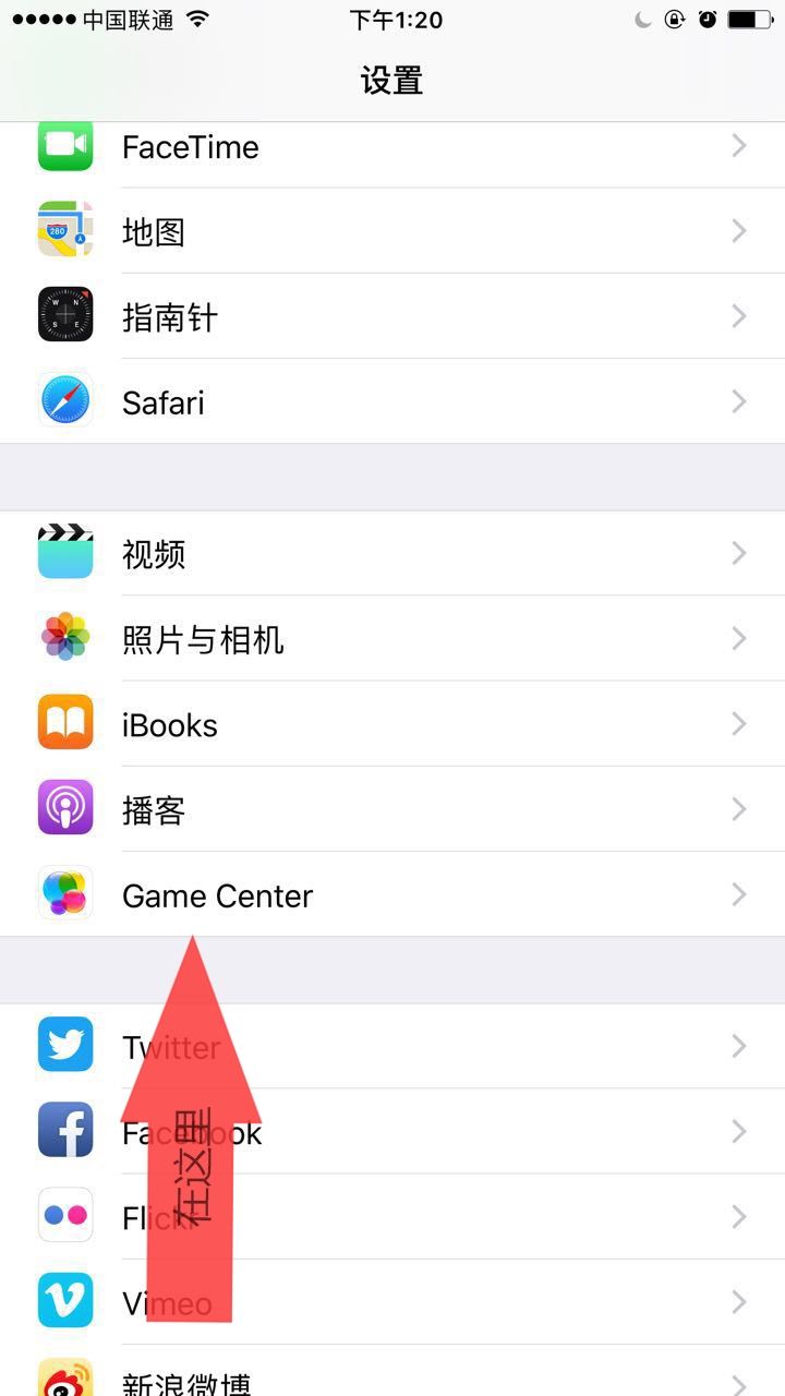 Game Center的设置地方:
