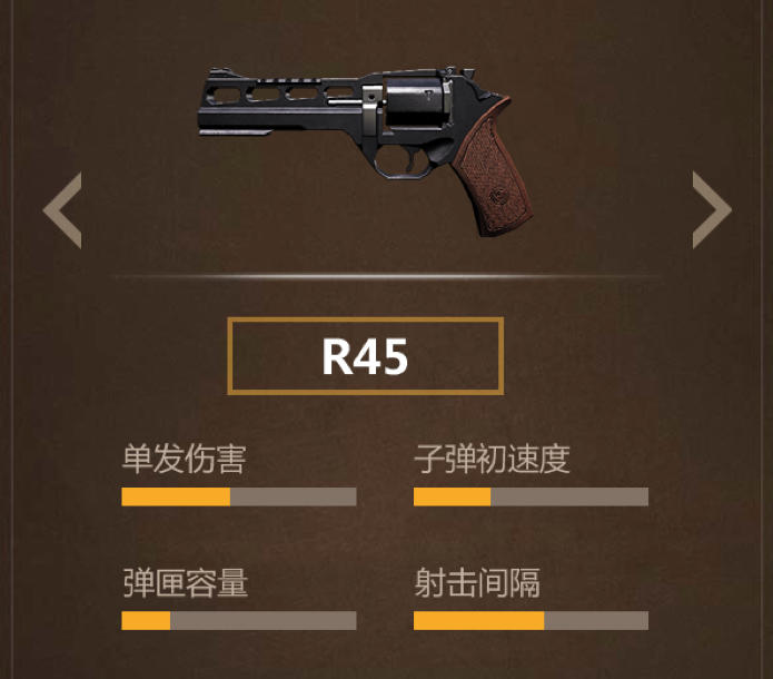 沙漠决斗怎么能少得了左轮手枪呢?这是继绝地岛上的R1895之后第二把左轮手枪:R45。