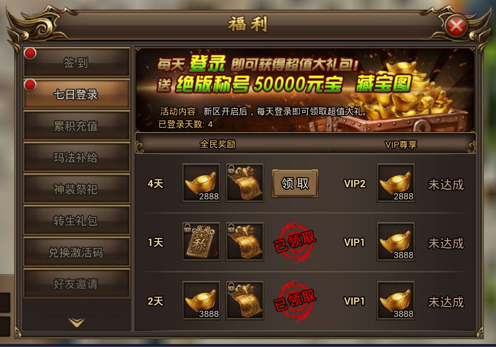 二、累计登陆大礼